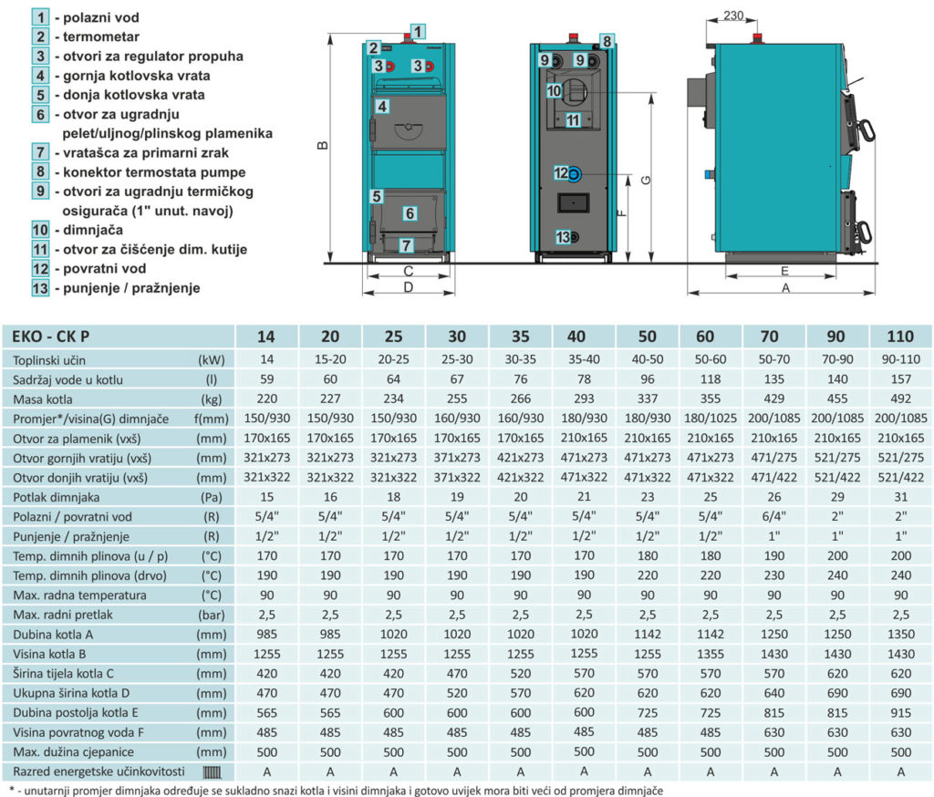 Max. radni pritisak - 2,5 bar | Razred energetske učinkovitosti - A |